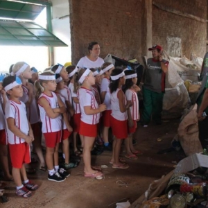 Para ter direito ao passeio, os alunos trouxeram uma sacola com materiais recicláveis, que foi destinada a Associação Mercedense de Agentes Recicladores (AMAR).