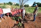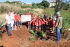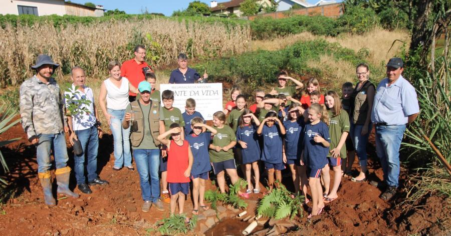 Na ocasião além de aprender sobre como foi o processo de recuperação da nascente os alunos, acompanhados do Professor Alvadir Brun, efetuaram o plantio de mudas de árvores nativas nas proximidades da nascente.