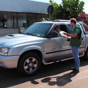 Na ocasião os Educadores Ambientais, por meio da Itaipu Binacional e o Programa Encontros e Caminhos, com o apoio da Força Verde e dos Agentes Recicladores entregou um lixo car aos veículos que passavam pelo local da ação.