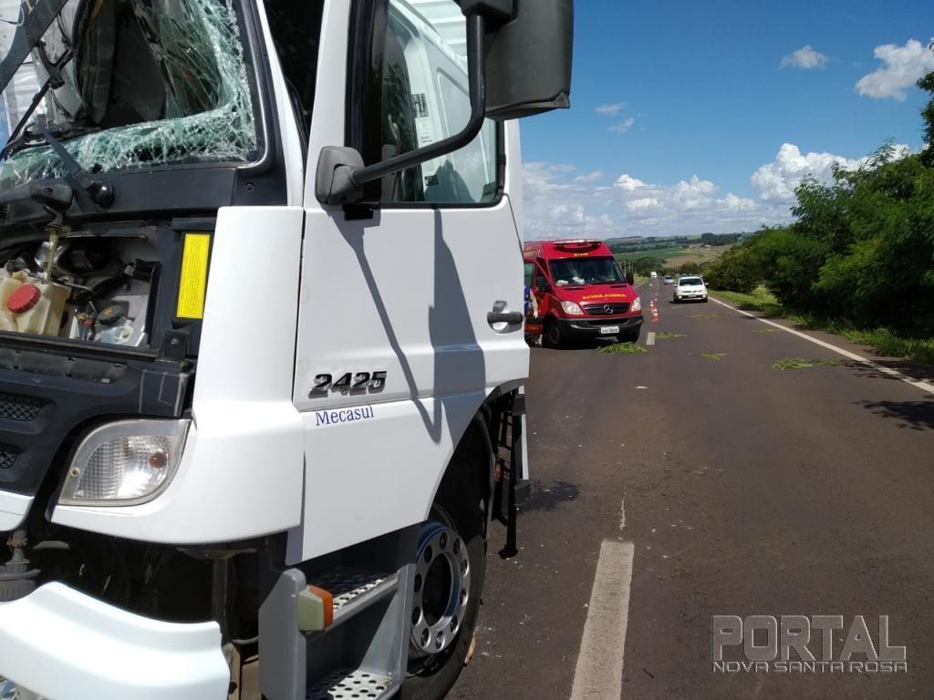 Na tarde deste domingo (24), um acidente envolvendo dois caminhões uma carreta Scania e um caminhão baú, na BR 467 sentido Cascavel a Toledo, próximo a interseção para Palotina, resultou em uma colisão traseira.