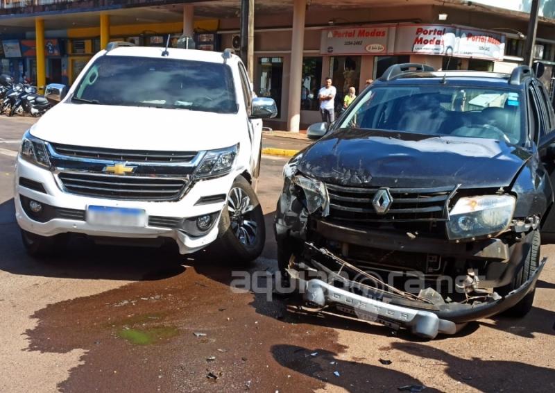 A colisão envolveu um veículo Duster que seguia pela avenida e uma caminhonete S10 que trafegava pela Rua Santa Catarina, ambos placa Mercosul.