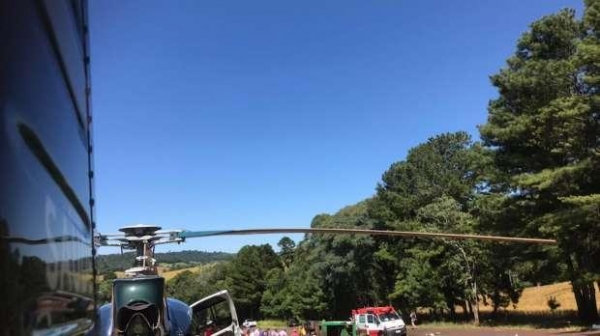 Condutor do caminhão foi transportado para o hospital pelo helicóptero do Consamu