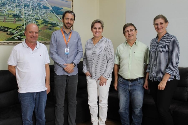 Eles foram recebidos no gabinete pela Prefeita Cleci Loffi, pelo Secretário de Desenvolvimento Econômico, Trabalho e Emprego Sérgio Paulino Groff e pelo Administrador de Pessoal Nelson Martins.
