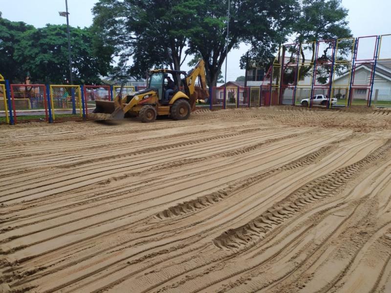 Quem tem costume de utilizar a quadra de areia da Praça Central Willy Barth para praticar esportes vai se deparar com o local repaginado. Recentemente a Administração Municipal realizou a retirada de toda areia antiga, que foi substituída por areia nova, e construiu um dreno para diminuir, ao máximo, que a água da chuva emposse em períodos chuvosos.