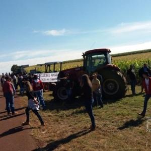 Os caminhoneiros receberam reforço no protesto que realizam em Mercedes. Agricultores aderiram ao protesto e foram para o local da concentração com maquinários.