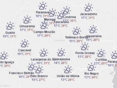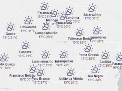 Em boa parte do Paraná, as temperaturas tiveram uma elevação considerável, em alguns pontos a máxima chega à casa dos 30ºC.
