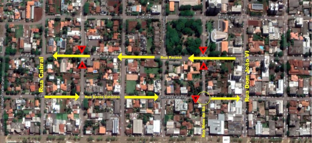 Outra alteração é a mudança de preferencial em três cruzamentos. Nas ruas Mem de Sá e Santa Catarina, a preferencial é para quem transita na Mem de Sá, e não mais para quem dirige pela rua Santa Catarina, como vinha acontecendo. Outro trecho onde houve mudança de preferencial é no cruzamento da rua Paraná com a 12 de Outubro. Agora, a parada é para quem está na rua 12 de Outubro. Já outro cruzamento com intervenção é na Mem de Sá com a rua Paraná. A parada obrigatória é para quem está na Mem de Sá.