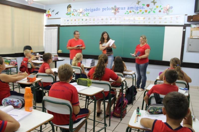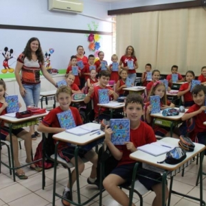 A entrega dos 590 exemplares, que vão ser utilizados durante todo o ano letivo, foi realizada pelo Secretário de Educação Gilson Backes, juntamente com coordenadores pedagógicos, professores e diretores.