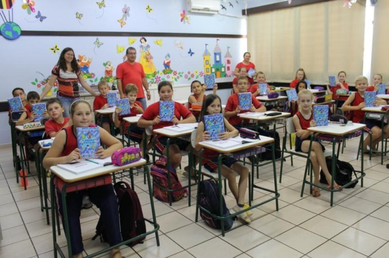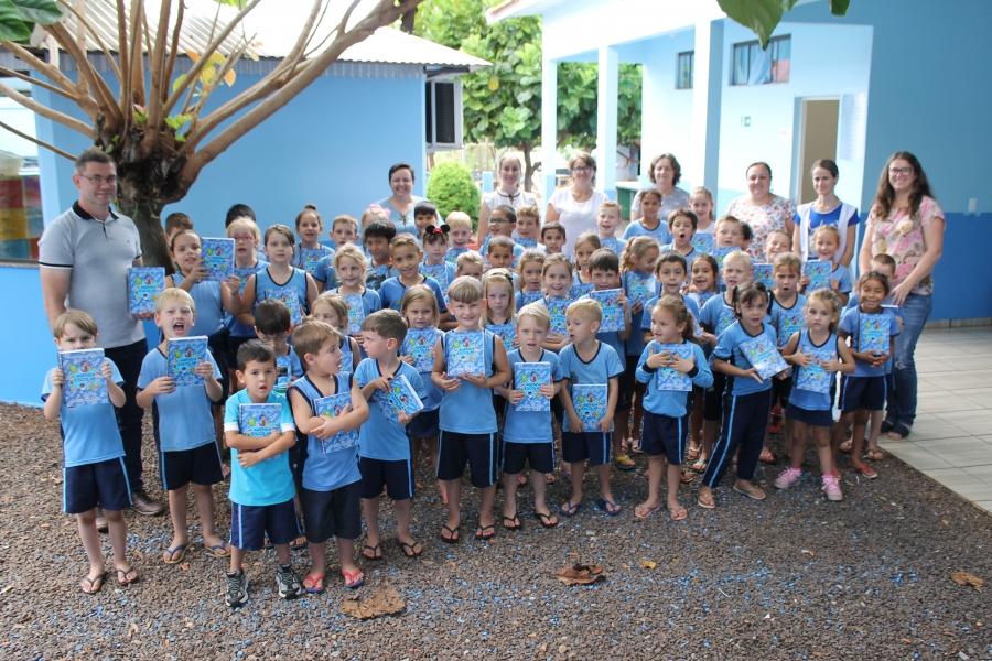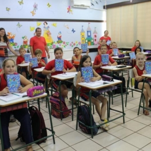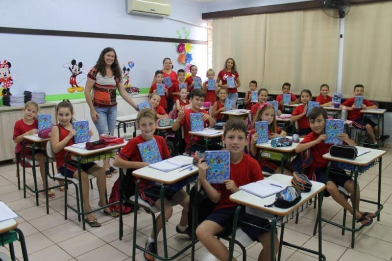 Receberam o material de forma gratuita todos os alunos da pré-escola aos 5º anos do Cantinho Feliz, Escola Tiradentes, Classe Especial, José de Alencar e Caetano Munhoz da Rocha.