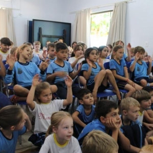 Visando incentivar a leitura e a imaginação, os alunos das escolas municipais de Mercedes assistiram a uma contação de histórias ofertada pela Secretaria Municipal de Educação e Cultura.