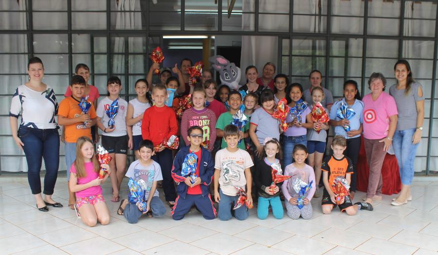 Em seguida a equipe do Projeto Piá, acompanhada do coelhinho da páscoa, distribuiu os ovos de chocolate. A Secretária de Assistência Social Andréa Hahn também fez parte desse momento que deixou a criançada muito feliz.