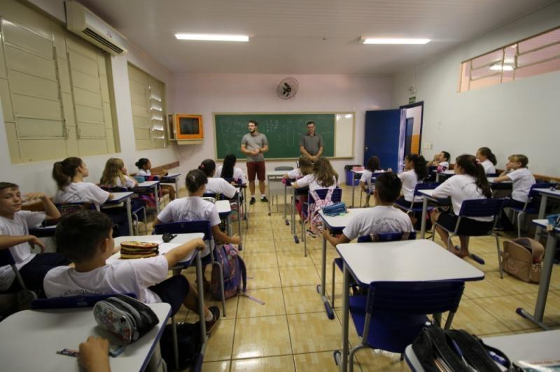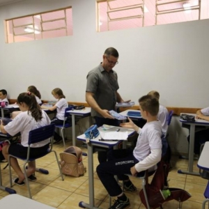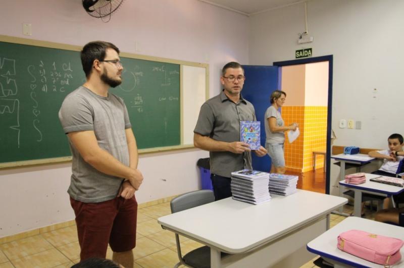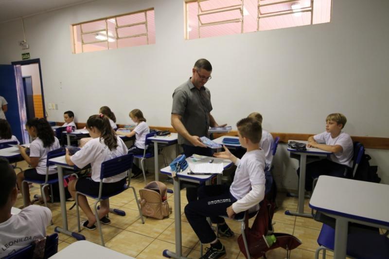 Estudantes do Colégio Estadual Leonilda Papen e da Escola Estadual do Campo Eronildes Francener, do Distrito de Três Irmãs, foram contemplados com o material.