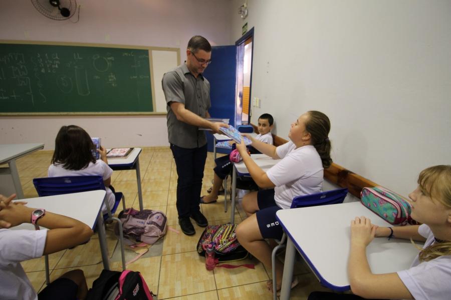Na volta as aulas nas escolas da rede municipal 590 exemplares já haviam sido entregues a todos os alunos, com o retorno das atividades na rede estadual de ensino a entrega foi estendida para os estudantes matriculados nos 6º anos.