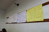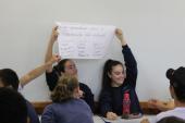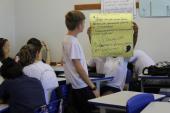 A roda de conversa foi complementada por uma atividade prática no qual os alunos, por meio de frases, levantaram questões acerca do assunto tratado.