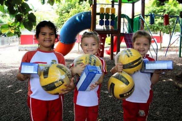 Durante todo o ano, os alunos das escolas municipais juntaram lacres e levaram para as salas de aula. Para estimular a participação, cada criança que entregou uma garrafa pet cheia recebeu uma bola e uma caixa de chocolates.