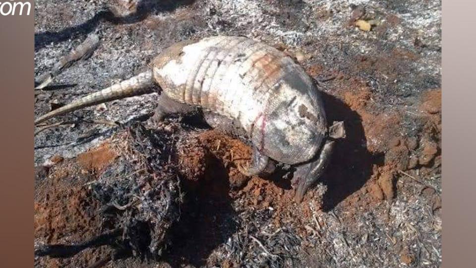Além da queimada na vegetação, as chamas também matam animais que moram na mata. Imagens registradas pela Defesa Civil de Quedas do Iguaçu mostram um macaco e um tatu carbonizados.