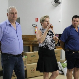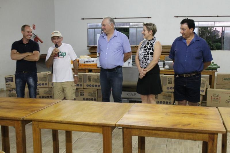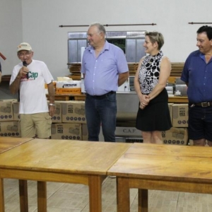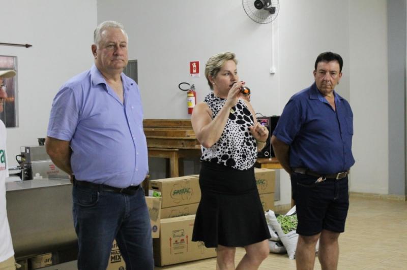 A solenidade de entrega, realizada na Associação dos Servidores Municipais de Mercedes (Asseme), contou com a presença da Prefeita Cleci Loffi, do Secretário de Agricultura Sebastião Kock, Diretor de Agricultura André Backes, o Presidente da Apromer Carlos Bernicker, o Chefe do Núcleo Regional da SEAB de Toledo Rudi Kuns, secretários municipais, produtores rurais e as famílias que integram a Apromer.