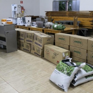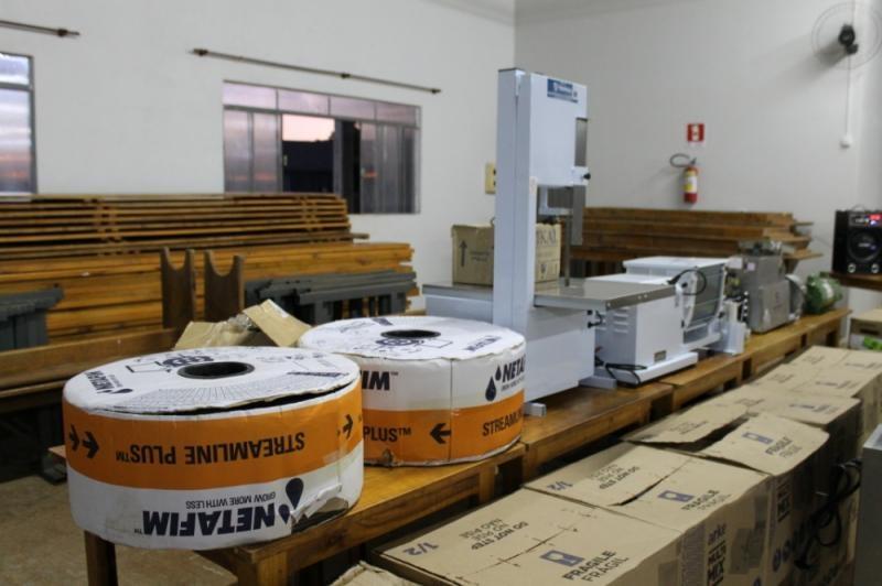 A aquisição contemplou a aquisição de um pasteurizador de leite, uma serra fita com moedor de carne, 5.000 metros de mangueira de gotejamento para irrigação, 100 aspersores para irrigação, um misturador elétrico para carne, 10 bombas para água 1,5 CV, 100 barras de tubo soldável 50 mm, 2.000mt² de tela sombrite 35%, uma centrífuga de mel, 10 cilindros para massas com capacidade de 5 kg, duas despolpadeiras de frutas e 1.500 sacas de 25 kg de substrato para hortaliças.