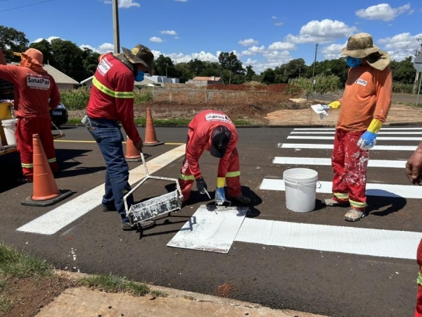A obra de asfaltamento de parte do Loteamento Renascer em Mercedes está na fase final de execução. Nesta segunda-feira (6), a empresa vencedora da licitação iniciou o serviço de pintura da sinalização viária das ruas.