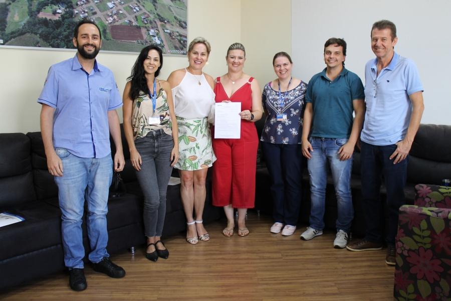 A assinatura da documentação ocorreu no gabinete e contou com a presença da Prefeita Cleci Loffi, da Secretária de Assistência Social Andréa Hahn, Engenheiro Civil Dyeiko Henz, Contador Antonio Savio Bayer, representantes da Caixa Econômica Federal e da empresa responsável pela obra.