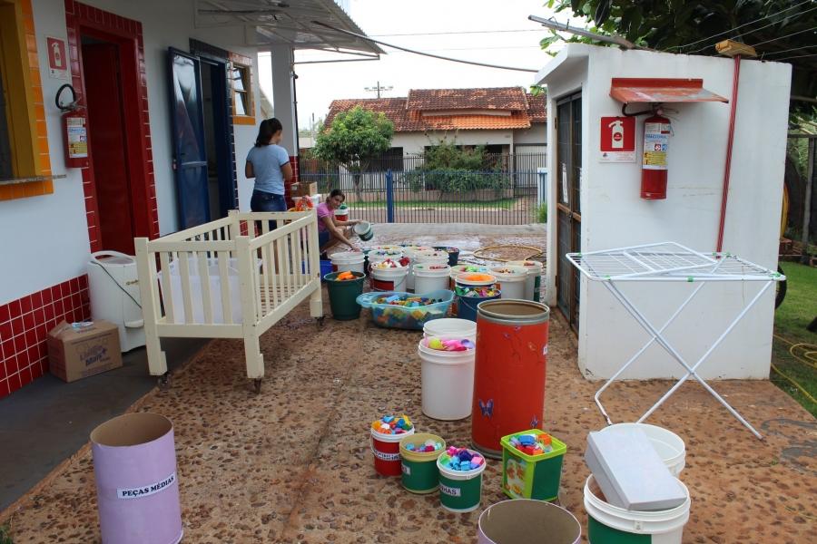 Durante esse período, necessário para eliminar os vírus no ambiente, os servidores, por meio da Secretarias de Educação e Cultura e Saúde, estão realizado a limpeza dos ambientes, brinquedos, cadeiras, berços, colchonetes, utensílios, entre outros.