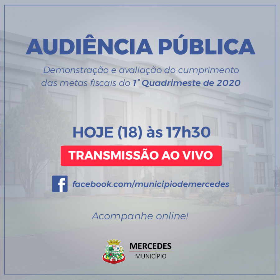 A Administração de Mercedes realizará hoje (18), a Audiência Pública online referente a demonstração e avaliação do cumprimento das metas fiscais do 1° quadrimestre de 2020.