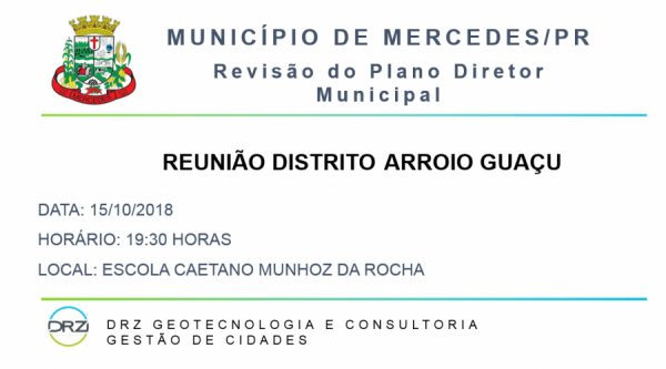 Com o objetivo de dar continuidade a revisão do Plano Diretor o município de Mercedes realiza nesta semana três encontros com população para discutir diretrizes de crescimento e questões como mobilidade, infraestrutura urbana, desenvolvimento social e econômico, preservação ambiental, entre outros.