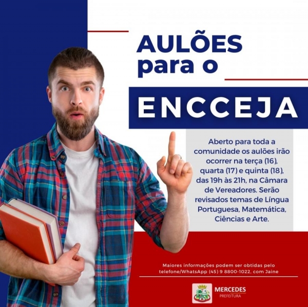 Com o objetivo de promover uma revisão para o exame de Certificação de Competências de Jovens e Adultos (Encceja), a Secretaria de Educação de Mercedes promove na próxima semana aulões de preparação para a prova.