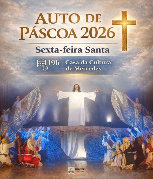 Símbolo do calvário, da dor e do flagelo de Jesus Cristo, a história da vida, morte e ressurreição será transformada em arte, fé e religiosidade no Auto de Páscoa 2026, que acontece nesta Sexta-feira Santa (3), em Mercedes.