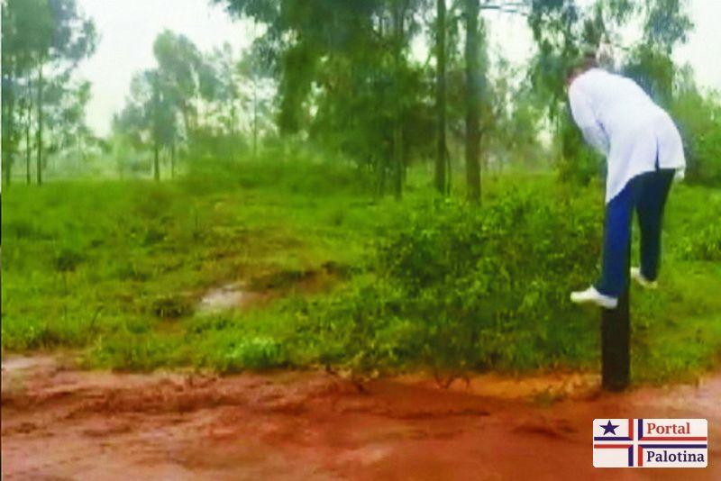 Preocupada em não perder a dose da vacina, Angela não teve medo em atravessar a enxurrada escorada em uma cerca de arame.