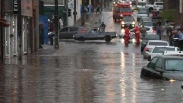 O Corpo de Bombeiros informou que choveu com muita intensidade durante a madrugada, cerca de 40 milímetros de acumulado, e isso provocou enxurrada em alguns pontos da cidade.