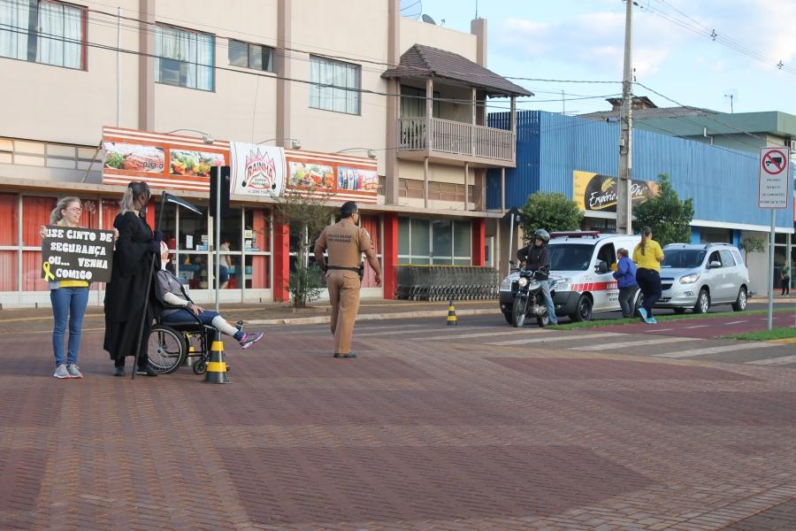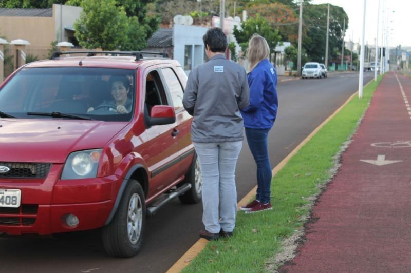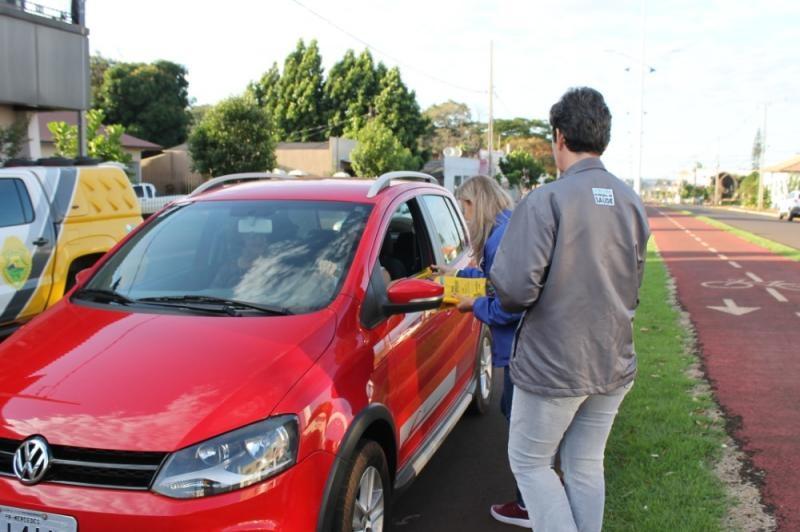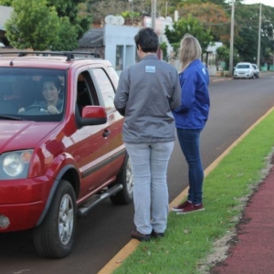 Veículos foram parados e os motoristas receberam material informativo sobre a campanha e conscientização sobre o combater à violência no trânsito. Também foram repassadas orientações sobre o uso do cinto de segurança, cadeirinhas para crianças, celular, entre outros.