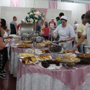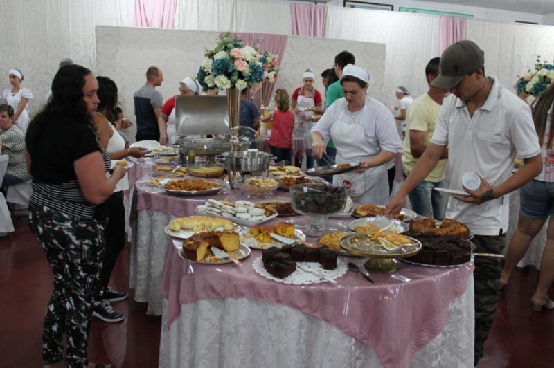 Entre vários tipos de bolos, doces, cucas, tortas doces e salgadas, strudel, rissoles, pães, bolachas, roscas, frios, embutidos e chimias cerca de 60 itens foram oferecidos.