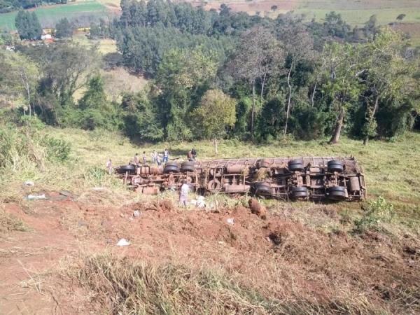 Uma carreta carregada com suínos acabou tombando no inicio da tarde desta quarta-feira na rodovia BR 163, próximo a cidade Lindoeste no trecho entre Lindoeste e Santa Lúcia.