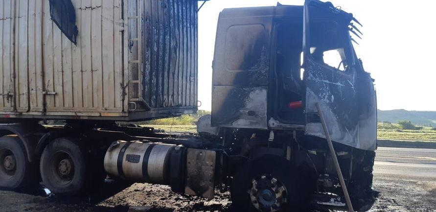 Um caminhão pegou fogo na tarde desta quarta-feira (23) no Km 232 da BR 153, em Jacarezinho, no Norte Pioneiro do Paraná. Ninguém ficou ferido.
