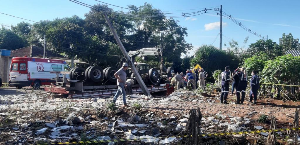 Equipes do Corpo de Bombeiros e SAMU de Francisco Beltrão e Itapejara do Oeste foram acionadas para atender um grave acidente de trânsito na rodovia PR-566 envolvendo um caminhão que acabou tombando.