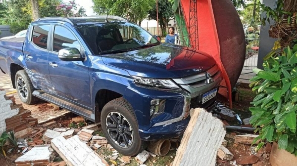 Com o impacto, o condutor da L200 perdeu o controle da direção, invadiu a calçada e atingiu um ponto de ônibus, arrancando a estrutura do local. Na sequência, o veículo colidiu contra o muro de uma residência, que também foi derrubado. A caminhonete parou parcialmente dentro do terreno da casa.