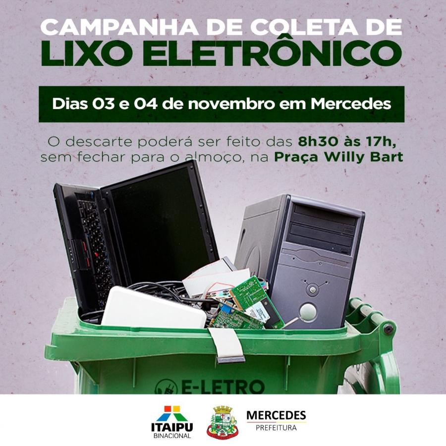 Com a intenção de recolher o lixo eletrônico e dar o destino adequado a ele, a Prefeitura de Mercedes realizará nesta quinta (3) e sexta-feira (4) mais uma campanha de recolhimento de materiais eletrônicos.