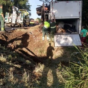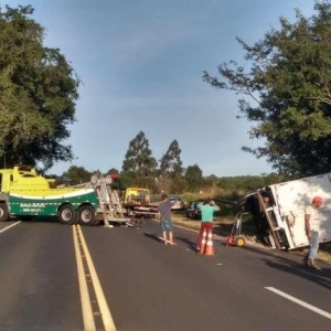 O caminhão foi destombado na parte da tarde pelas equipes da Polícia Rodoviária Federal.
