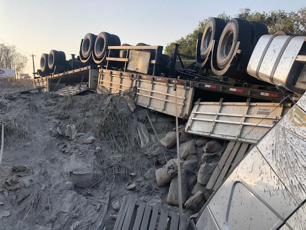 O caminhoneiro foi socorrido e encaminhado a UPA Marechal, a carreta transportava sacos de cimento, parte da carga ficou espalhada nas margens da rodovia.