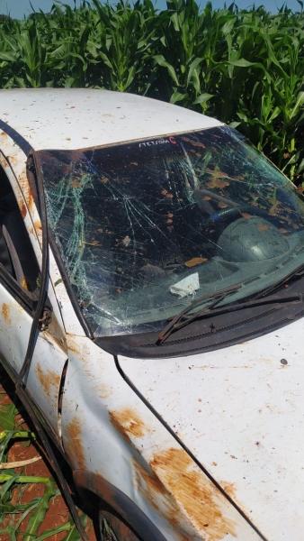 Com a colisão, o Corsa onde estava a família acabou saindo da pista e capotou, parando em meio a uma lavoura de milho.
