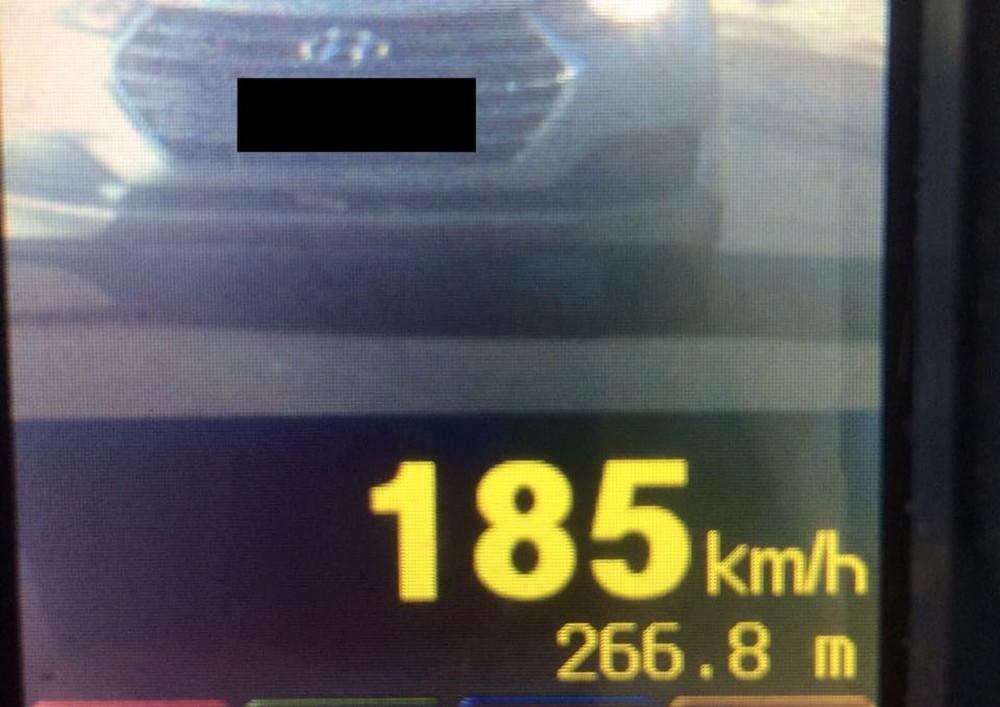 Na ação, realizada na quarta-feira (25), outro carro foi flagrado pelo radar móvel a 185 km/h. A velocidade máxima permitida no trecho é de 80 km/h.
