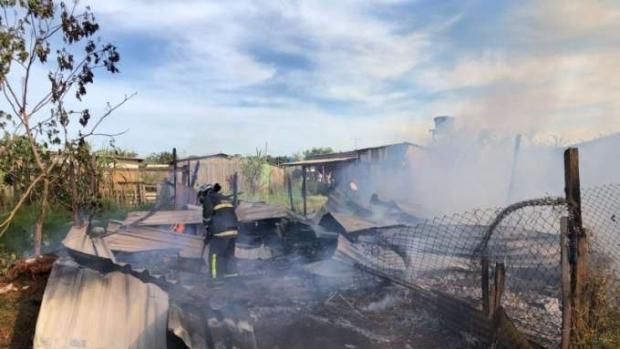 Um casa foi consumida pelas chamas na tarde de quarta-feira (11), na Rua dos Compadres, na região dos Bubas, em Foz do Iguaçu.
