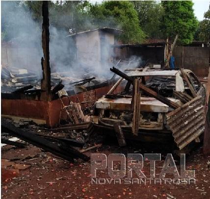 Uma residência ficou destruída após um incêndio, por volta das 01h30 desta quinta-feira (14), na Rua 14 Biz, proximidades do campo do Japonês, região do Jardim Progresso.