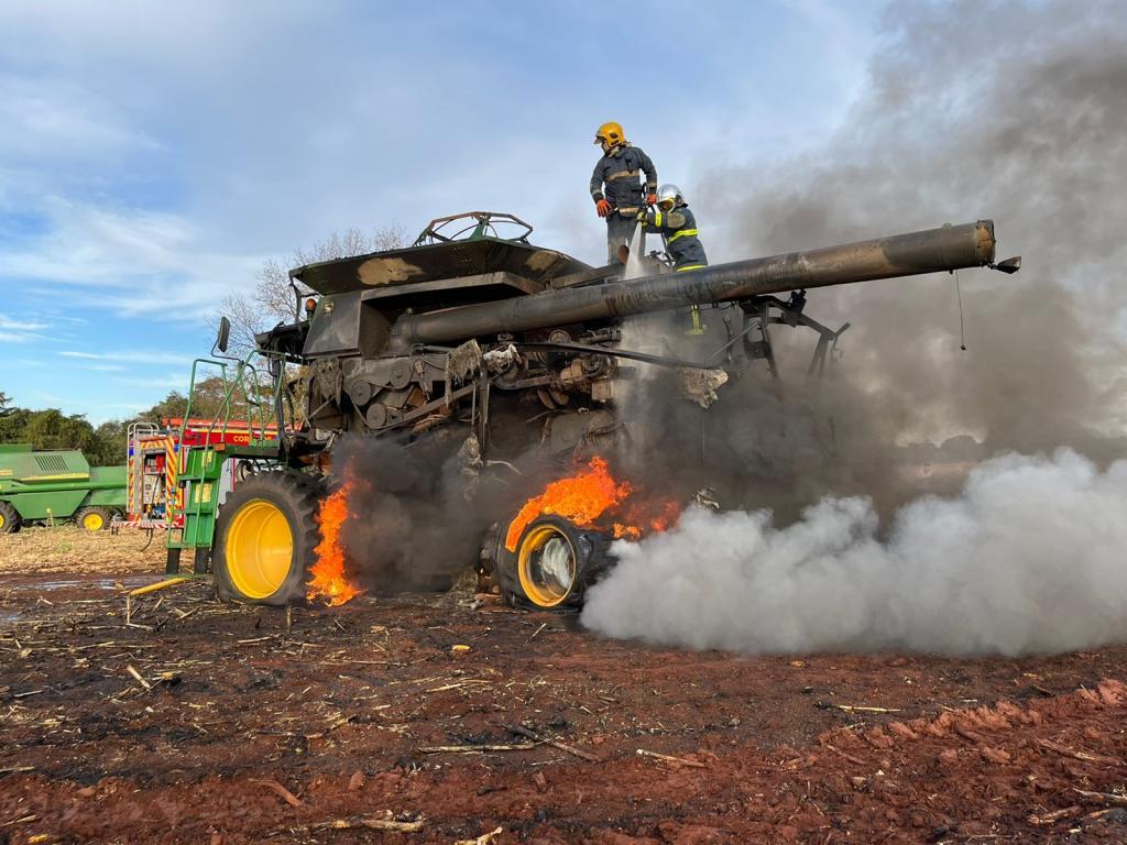 Segundo o senhor que estava colhendo milho em uma área de aproximadamente 40 alqueires, disse que só escutou um forte barulho na parte de trás do maquinário, provavelmente no motor, e segundo depois, notou que se tratava de um incêndio.