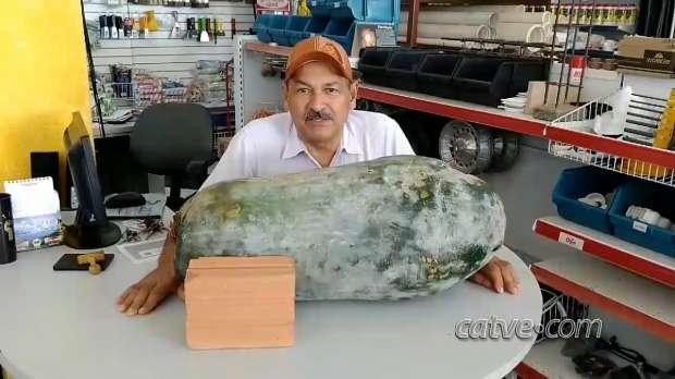 Com 41 quilos, "maior pepino do mundo" é colhido por agricultor de Cascavel
