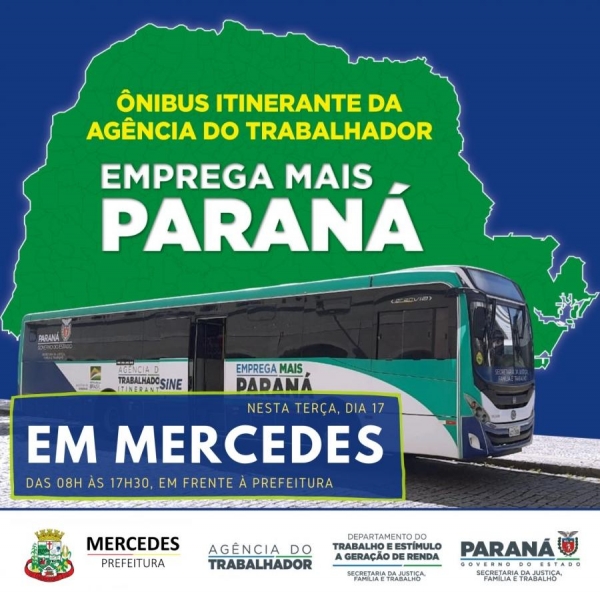 O Posto Avançado do Trabalhador de Mercedes está com 66 oportunidades de trabalho abertas. Para facilitar ainda mais aos interessados na vagas, amanhã, dia 17, estará em Mercedes o ônibus do programa “Emprega Mais Paraná”.