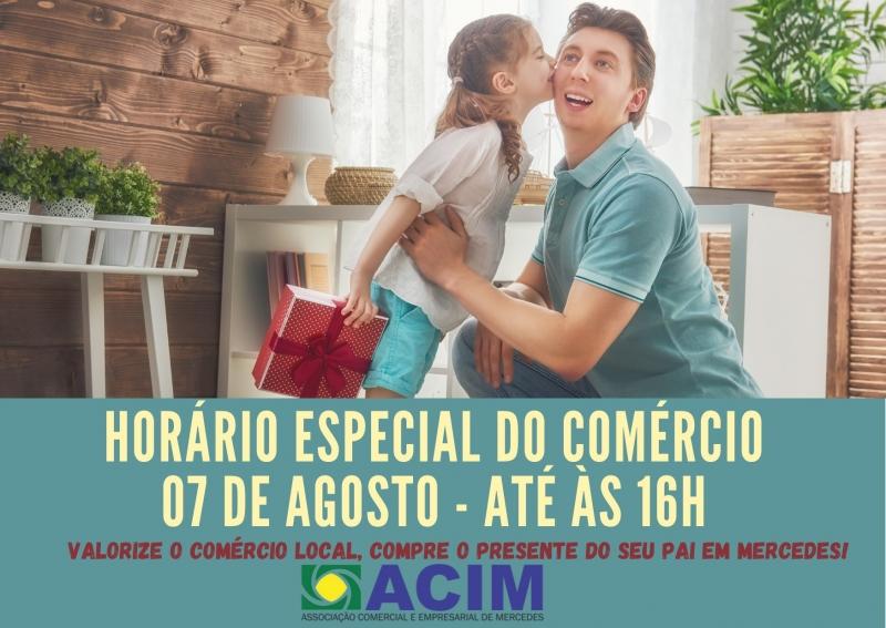 O comércio de Mercedes atenderá em horário especial neste sábado (07). O objetivo é oferecer aos consumidores uma oportunidade a mais para a compra de presentes para o Dia dos Pais, celebrado neste domingo, dia 08 de agosto.