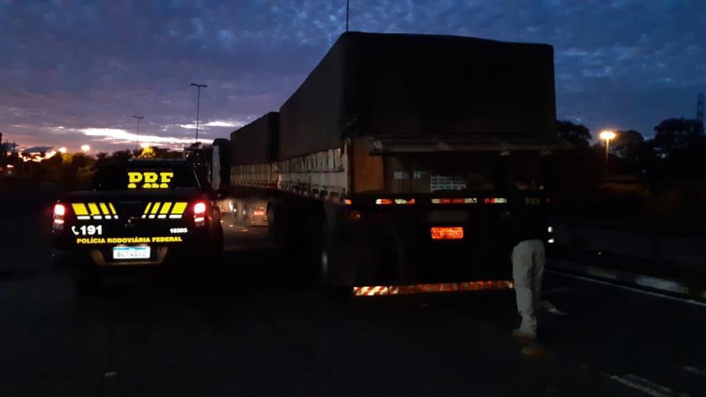 Também foi observado que o cavalo-trator e ambos semirreboques portavam placas falsas.