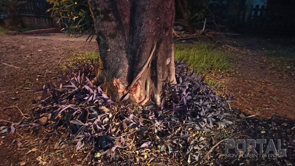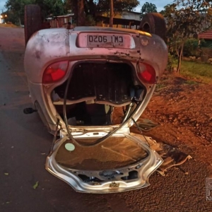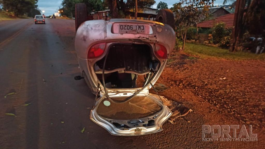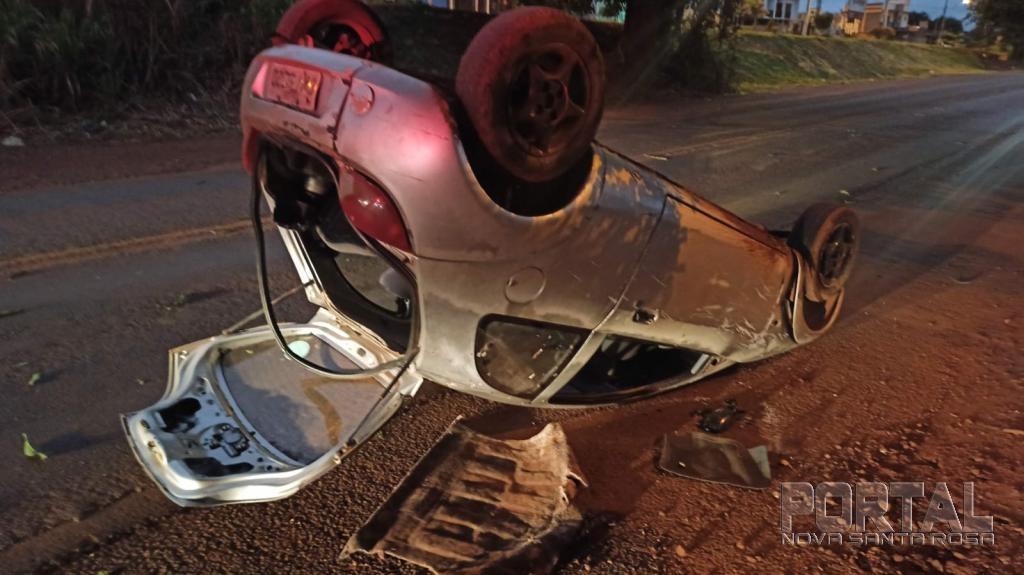 o condutor do veículo Ford Ka com placas de Cascavel trafegava pela via e perdeu o controle e atingiu uma árvore na beira da avenida e capotando em seguida ficando com as rodas para cima no acostamento.